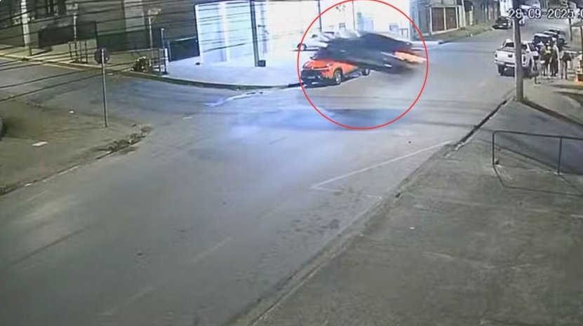 Uma perseguição cinematográfica chamou atenção em Belo Horizonte (MG) na noite de sábado (28), quando câmeras de segurança registraram o momento em que um carro furtado e uma viatura da Polícia Militar chegaram a “voar” durante a fuga de suspeitos.