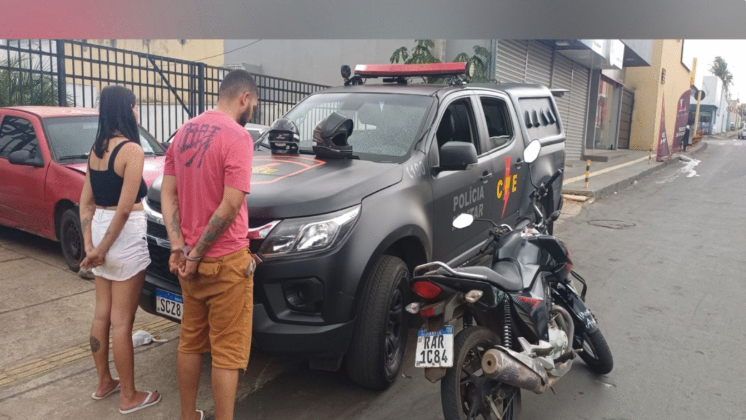 Um casal foi preso em flagrante após roubar o celular de uma jovem de 20 anos que estava sentada na calçada, na manhã de terça-feira (23), no Setor Garavelo, em Aparecida de Goiânia.