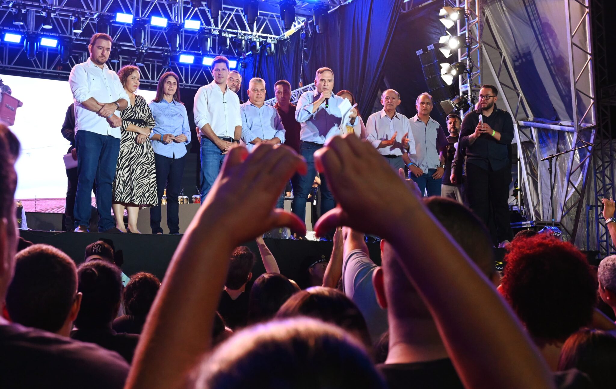 O prefeito subiu ao palco ao lado da primeira-dama e secretária municipal de Políticas para Mulheres, Maria Rita Mabel, reforçando a importância da presença do poder público nas periferias e da valorização das regiões mais carentes da cidade.