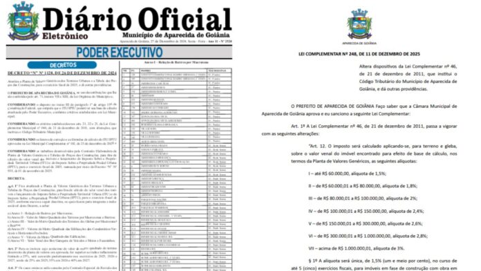 A polêmica sobre o aumento de impostos em Aparecida de Goiânia ganhou um novo capítulo, e agora com base em documento oficial. Apesar de vereadores afirmarem na tribuna que não houve aumento de IPTU, um decreto publicado no Diário Oficial do município comprova que houve, sim, atualização que impacta diretamente o valor cobrado dos contribuintes.