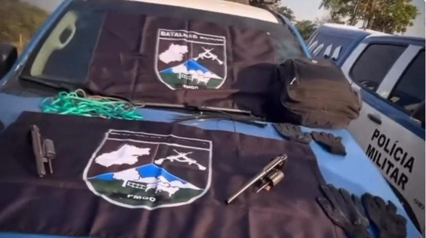 Com os suspeitos, a polícia apreendeu duas armas de fogo, além da motocicleta adulterada e diversos objetos como balaclavas, cordas, lonas, luvas e faca — materiais que, segundo os investigadores, eram possivelmente utilizados em crimes cometidos na região. Todo o material foi encaminhado à Polícia Civil.
