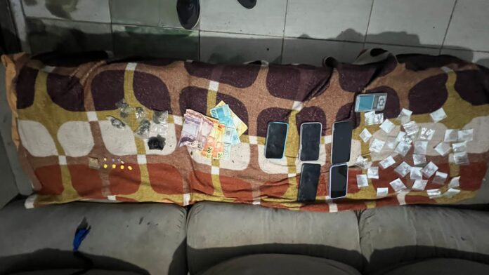 Durante campana no período noturno, os policiais visualizaram movimentação típica de tráfico. Ao perceberem a presença da equipe, um dos investigados demonstrou nervosismo e tentou fechar o portão do imóvel, sendo imediatamente abordado. Com ele foram encontradas porções de cocaína embaladas e prontas para venda.