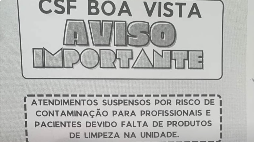 Uma situação inusitada e preocupante atingiu o Centro de Saúde da Família (CSF) Boa Vista, em Goiânia. Pacientes que procuraram atendimento nesta semana encontraram um aviso na porta da unidade informando a suspensão temporária de diversos serviços, devido à falta de produtos de limpeza, o que gerou risco de contaminação no local.