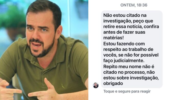 Em mensagem enviada à redação, Mendanha afirmou que não é citado nas investigações e solicitou a retirada da matéria. “Não estou citado na investigação, peço que retire essa notícia. Confira antes de fazer suas matérias”, declarou. Ele também afirmou que, caso o pedido não seja atendido, poderá buscar medidas judiciais. “Repito: meu nome não é citado no processo, não estou sob investigação”, completou.