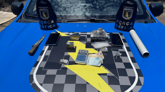 Com o indivíduo, foram encontradas várias porções de maconha, uma balança de precisão e dois aparelhos celulares. Após a prisão, ele informou aos policiais que possuía mais drogas em sua residência. No local, foram apreendidas quantidades adicionais de entorpecentes.