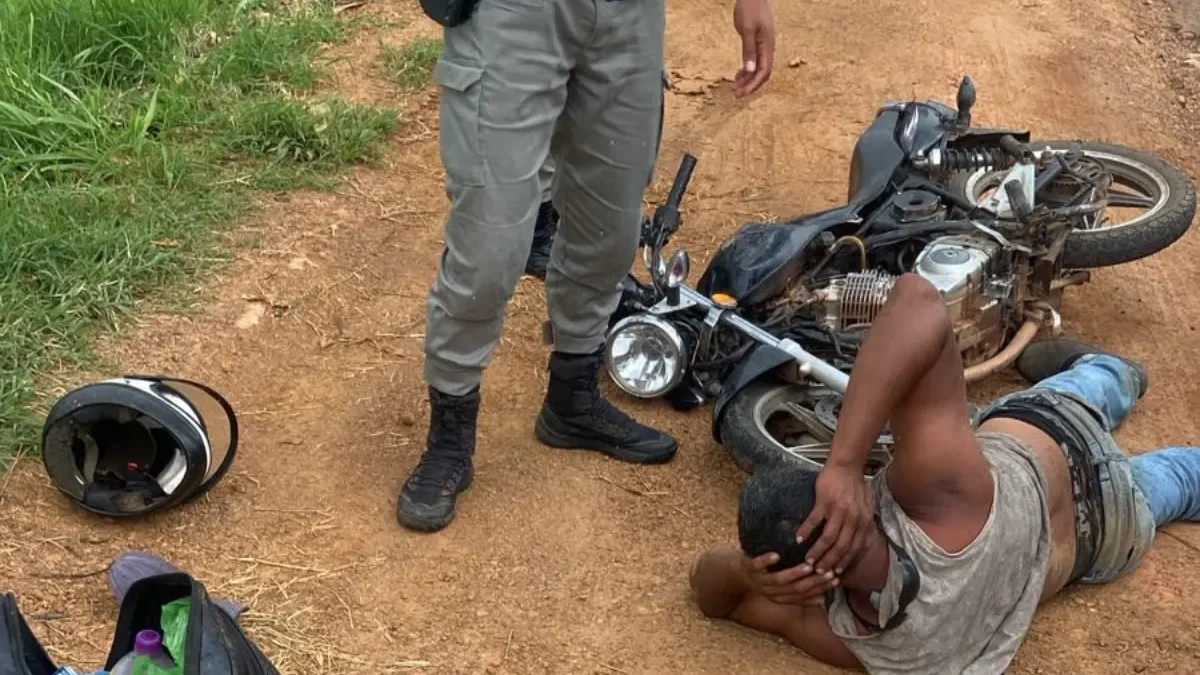Durante as diligências, a PM avistou um motociclista que correspondia à descrição da vítima. Na primeira tentativa de abordagem, o suspeito tentou fugir, mas colidiu com uma viatura.