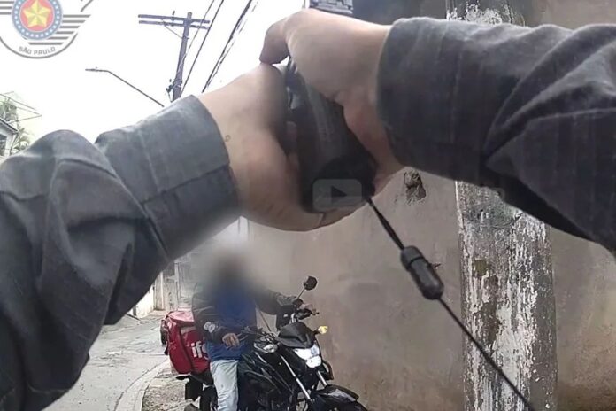 Imagens registradas pelas câmeras corporais dos policiais mostram o momento em que o suspeito é interceptado na rua enquanto conduzia uma motocicleta usada para entregas. Durante a abordagem, ele foi detido sem reagir e levado ao 89º Distrito Policial de São Paulo, onde o caso foi registrado como lesão corporal, ameaça e violência doméstica. A ocorrência segue sob investigação das autoridades.