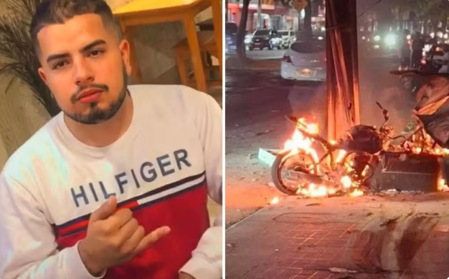 O motociclista Carlos Willian Rodrigues Martins, de 25 anos, morreu na noite de domingo (14) após bater a moto em um poste na Avenida Cesar Lattes, no Setor Novo Horizonte, em Goiânia. O impacto provocou um incêndio que destruiu o veículo e assustou pedestres que estavam próximos.