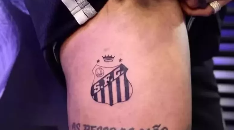 O craque Neymar voltou a demonstrar sua ligação com o Santos Futebol Clube de forma marcante. No último fim de semana, o camisa 10 eternizou na pele o escudo atualizado do Peixe, tatuado na coxa direita, junto da coroa em homenagem a Pelé e das estrelas que simbolizam os títulos mundiais do clube.