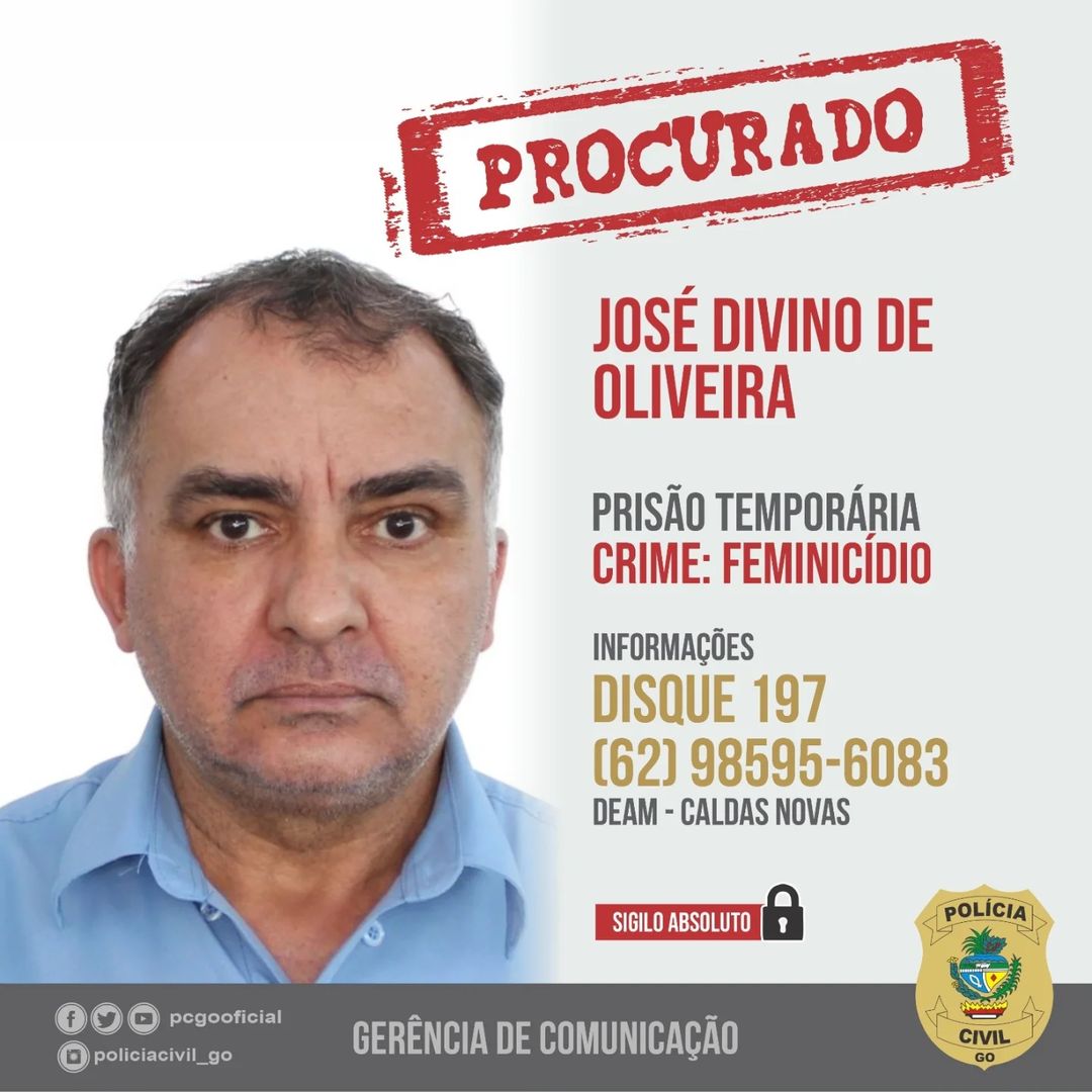 A Polícia Civil de Goiás, por meio da Delegacia Especializada de Atendimento à Mulher de Caldas Novas – 19ª DRP, durante a investigação das circunstâncias da morte de uma mulher, ocorrida no dia 16 de novembro, identificou José Divino de Oliveira, de 62 anos de idade, ex-companheiro da vítima, como o autor do crime.