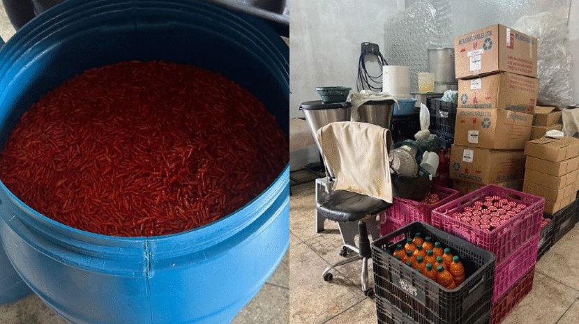 No local, os agentes encontraram barris plásticos com pequi e pimentas em fermentação, garrafas reutilizadas, máquinas, utensílios domésticos e embalagens, todos usados em um ambiente insalubre. Os produtos já estavam etiquetados e prontos para venda, mas sem CNPJ, registro na Vigilância Sanitária ou autorização da Anvisa.