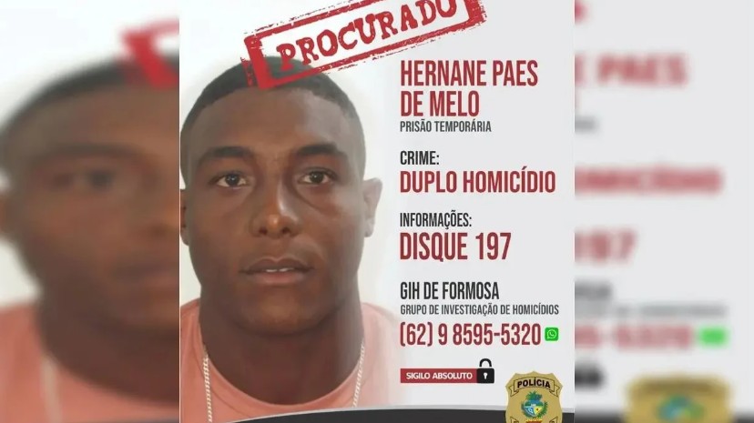 A Polícia Civil está à procura de Hernane Paes de Melo, principal suspeito de assassinar um casal no Setor Jardim das Américas, em Formosa, no dia 4 de novembro. Segundo as investigações, o suspeito seria vizinho das vítimas e é casado com a prima do homem que foi morto.