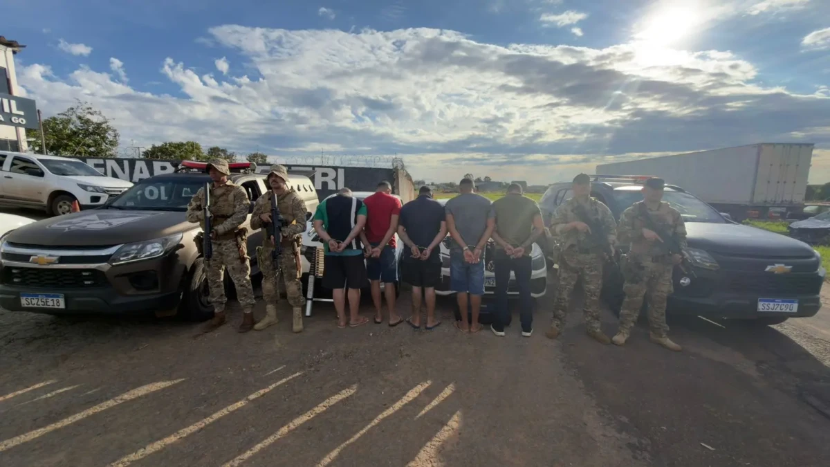 Quatro dos suspeitos foram abordados em Cristalina, cidade que fica na divisa entre Goiás e Minas Gerais, enquanto viajavam em dois carros. A ação foi realizada por militares do Comando de Operações de Divisas (COD) e por agentes do Grupo Antirroubos a Bancos (GAB), da Delegacia Estadual de Investigações Criminais (Deic).